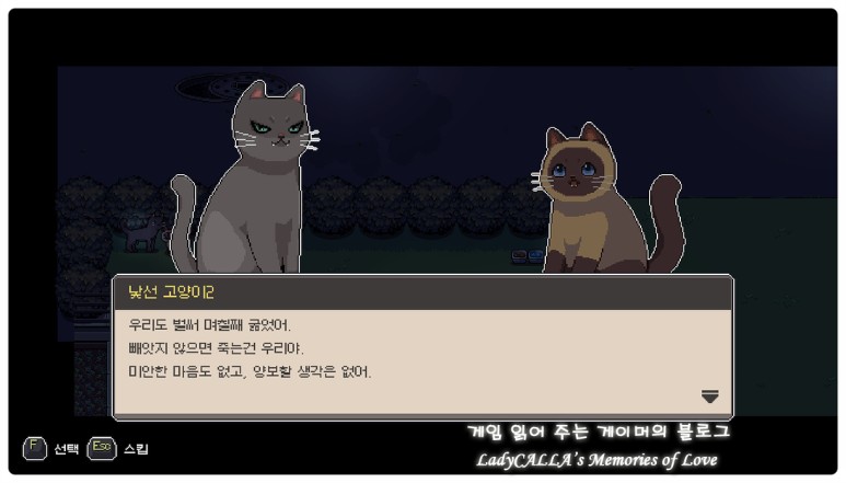 '길냥이들의 삶'에 대해서 알아가게 되는 이 작품은 '과연 시나몬이 무사히 다시 집으로 돌아갈 수 있을까?'에 대한 궁금증을 낳으며, 얼리 액세스를 마쳤었습니다.