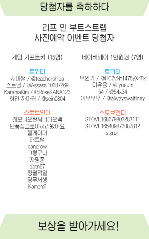 "리프 인 부트스트랩" 사전예약 이벤트의 당첨자를 공개합니다!