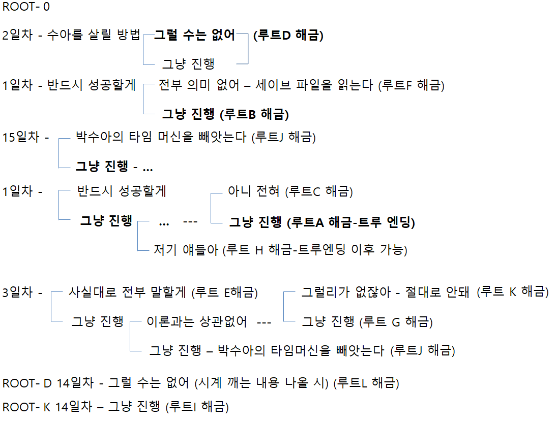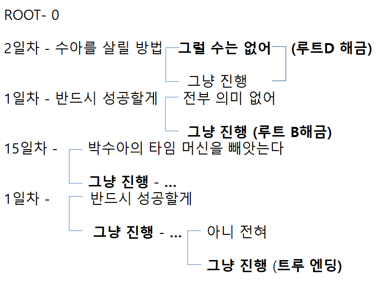 루트 D, B를 해금하신 분들은 15일차 선택지 ... 부터 진행하시면 됩니다