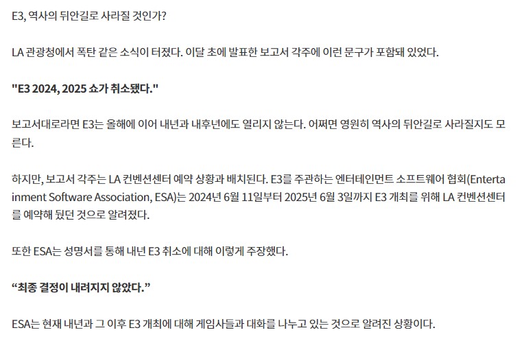 게임사 자체 쇼가 열리더라도 E3 통해서 한번에 모아 보는 맛이 있는데 아쉽네요