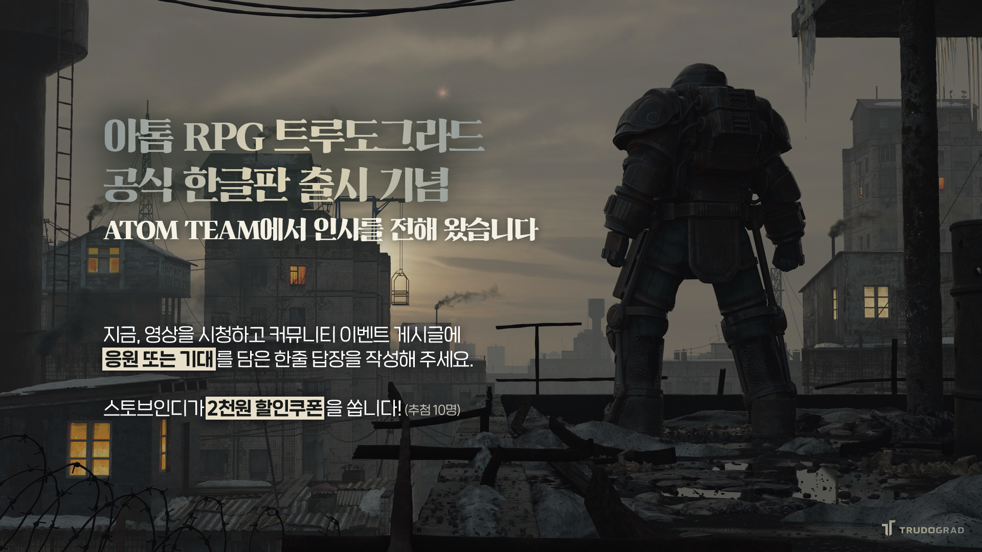트루도그라드 게임이 스토브 인디에 출시를 축하합니다. ATOMTEAM (아톰팀)의 게임이 한글화 되어 발매되어