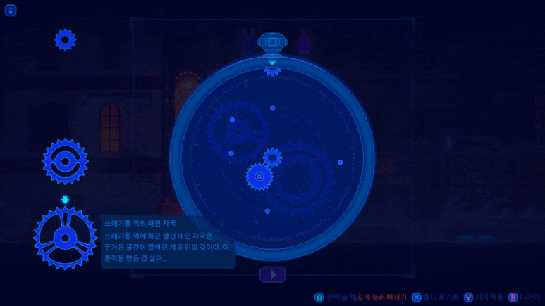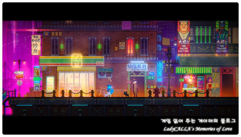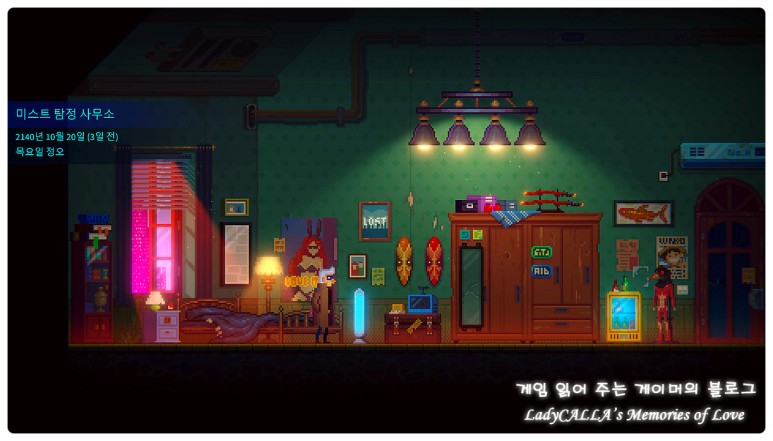 기원 변이도 다양한 색감을 활용한 픽셀 아트의 매력이 정말 돋보였는데, '안개 탐정 : 네온 바다의 이야기' 역시 픽셀 아트의 매력이 잘 표현되어 있다.