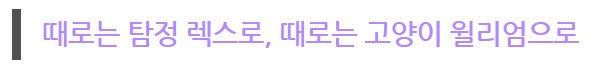 '안개 탐정 네온 바다의 이야기'는 탐정 렉스가 주인공인 작품이지만 챕터 중간중간, 고양이 '윌리엄'의 도움을 받아서 게임을 진행하게 되는 구간들이 있다.