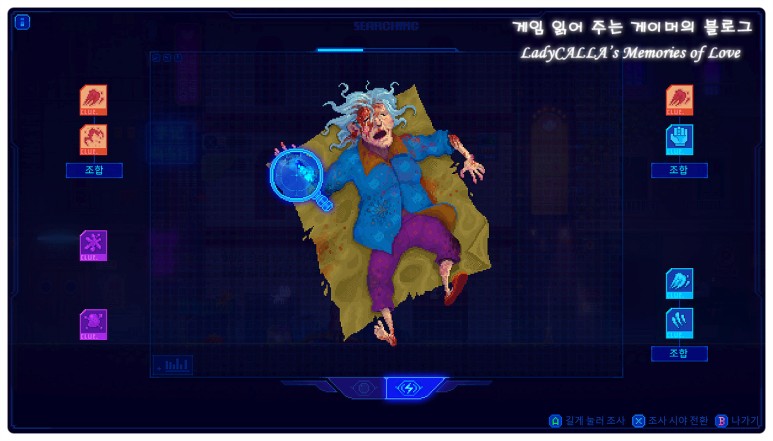 사건이 발생하게 되면, 플레이어는 사건 현장에 남겨져 있는 시신이나 흔적 또는 증거품들을 조사하여 단서들을 찾는 과정을 진행하게 된다.