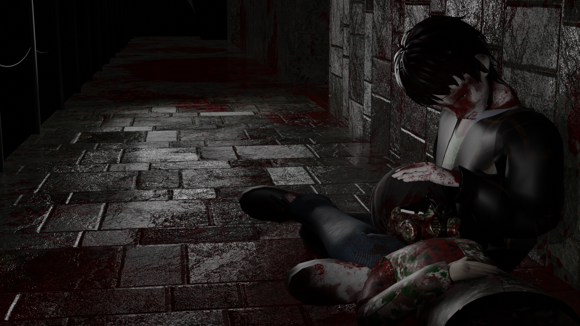 벽에 쓰러지듯 기댄 채 가쁜 숨을 몰아쉬는 저주받은 이가.