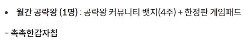 엄청 오래전 일이지만... 4월에 공략왕에 당첨된 적이 있습니다.