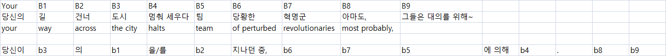 재검수 과정의 문제점은 A문장에 맞게 단어들을 재번역하면 B문장과 C문장이 어색해지는 문제를 해결해야한다는 것 입니다.