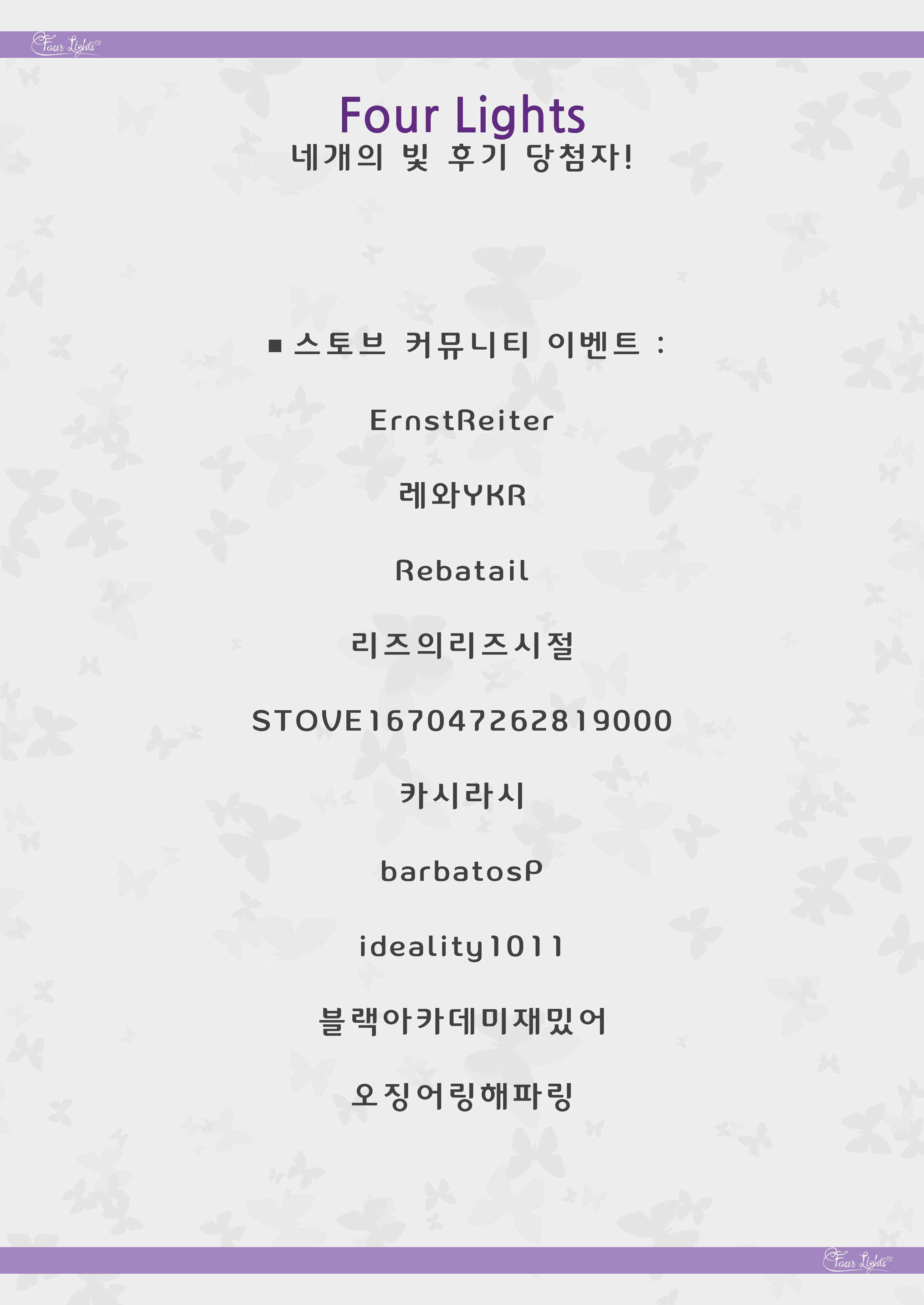 • 당첨자 분들께서는 정해진 기간 내에 쪽지로 발송되는 당첨자 정보 입력 양식을 제출하셔야 합니다. (기간 내 미제출 시 당첨이 취소될 수 있습니다.)