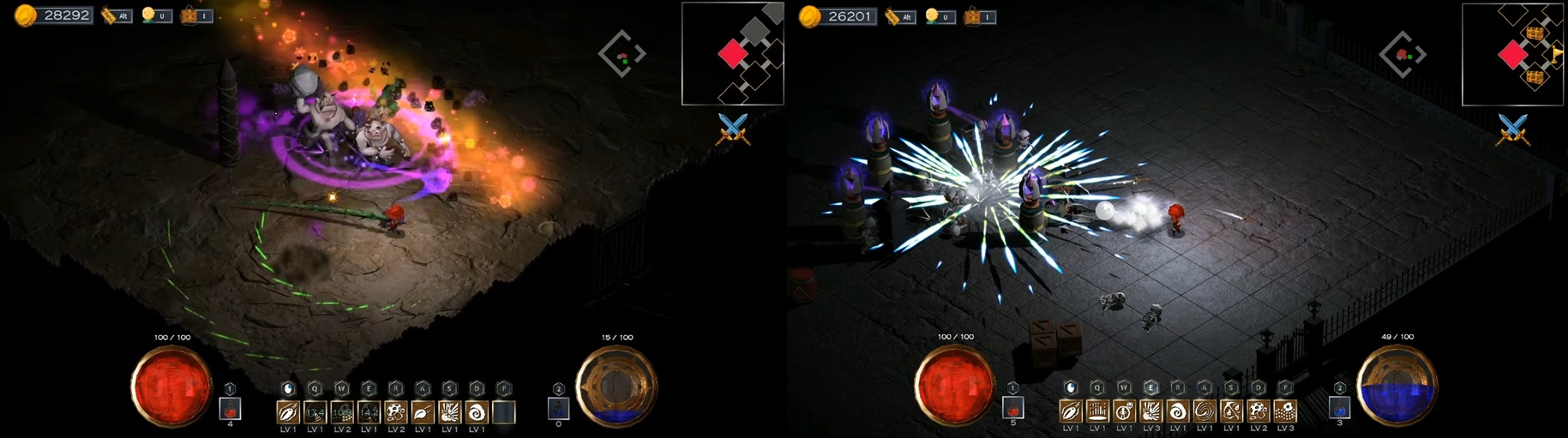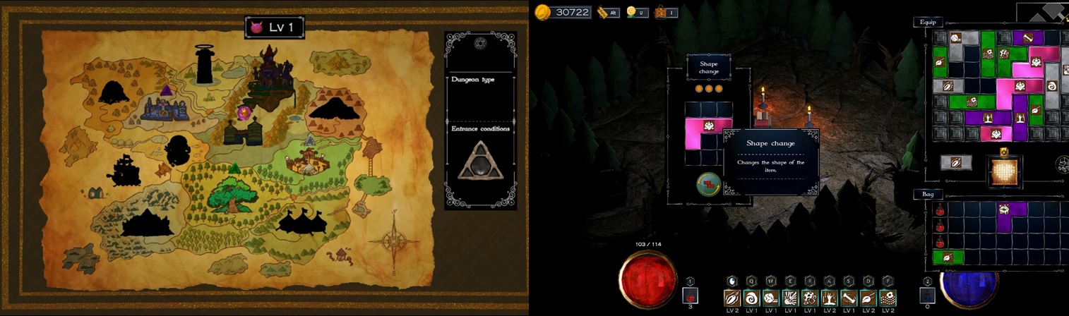 - 던전에서 파밍한 재료를 통해 자유롭게 스킬을 조합하는 것이 가능하다.