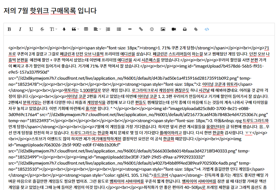 * 코드보기 들어가서 아까 복사해둔 코드를 붙여넣으면 끝입니다. 이제 에디터 하단에 등록 버튼을 누르면 정상적으로 글이 등록될 겁니다.