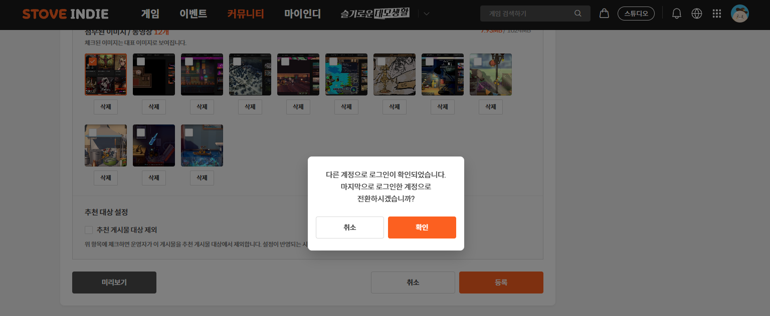 '다른 계정으로 로그인이 확인되었습니다'며 계정을 전환하겠냐고 묻는 질문이 뜹니다. 이때에 확인을 누르면 썼던 글들이 다 날라갑니다. 예전에 글을 한번 이렇게 날렸었는데 오늘 또 날릴 뻔 했네요.