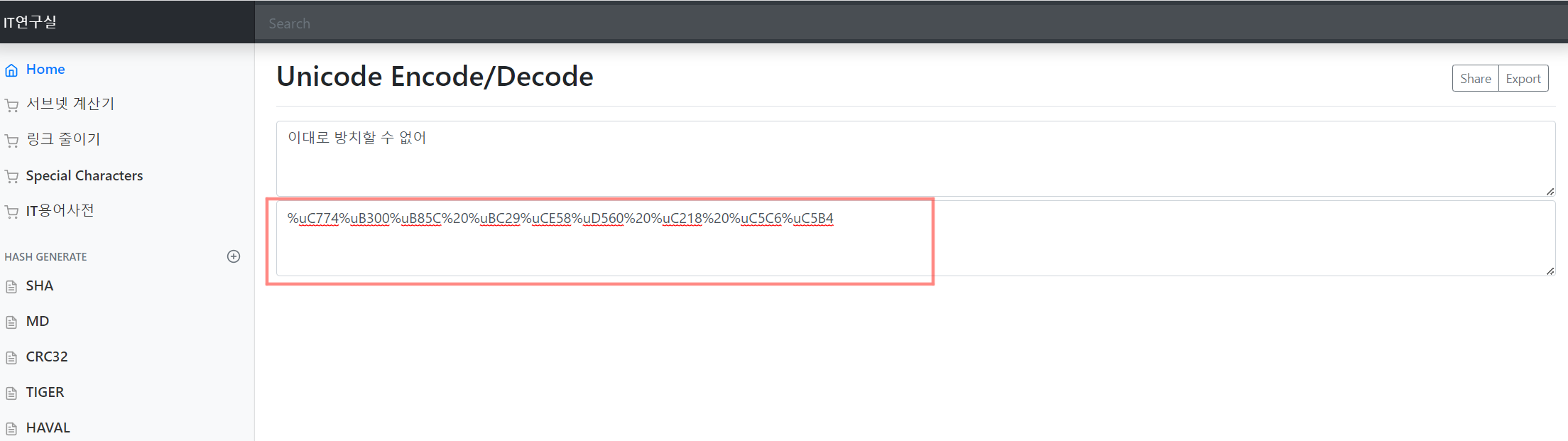 위 사진처럼 "Input here to Decode" 쪽에 변환하고 싶으신거 넣으시면 됩니다.