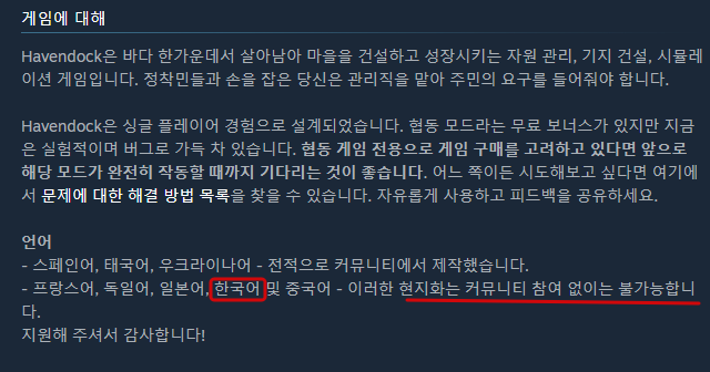 <스팀의 현지화 지원 정책은 현지화 유저 커뮤니티 지원 입니다.>