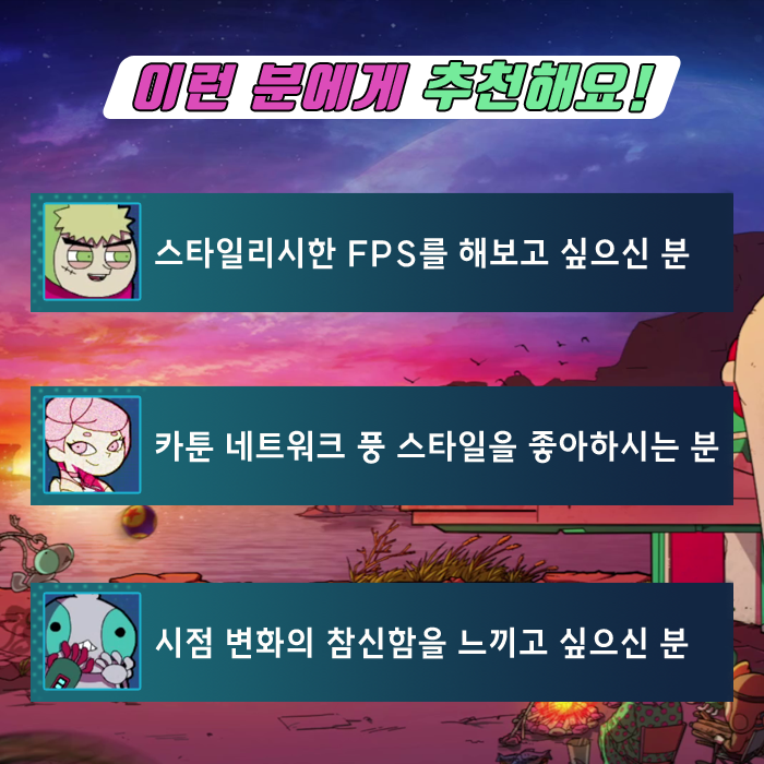 그래서 FPS를 스타일리시하게 플레이 해보고 싶은 사람이라면 추천을 해 줄 수 있는 게임이라고 말하고 싶습니다.