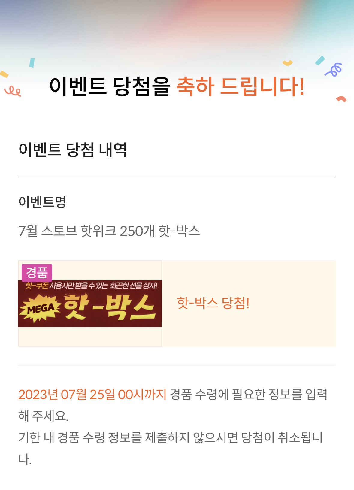 저도 핫박스에 당첨되었습니다. 뭐 받을지 궁금하네요