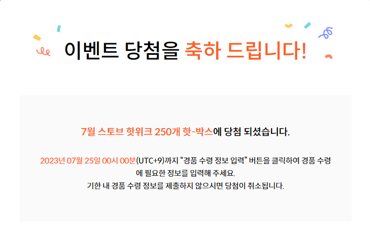 이벤트 관련해선 이번이 첫 당첨인데 어떤 경품이 올 지 두근두근하군요.