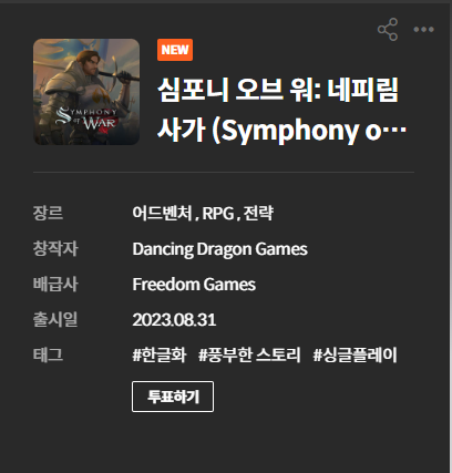 심포니 오브 워 한글은 유저 패치를 받아서 상태가 괜찮기는 한데 같이 출시되는 퍼블리셔의 다른 작품들의 한글화 상태가 좀 안 좋다고 알고 있습니다. 그래서 4~6개 타이틀 동시 출시 뉴스 듣고 좀 의아하긴 했습니다.