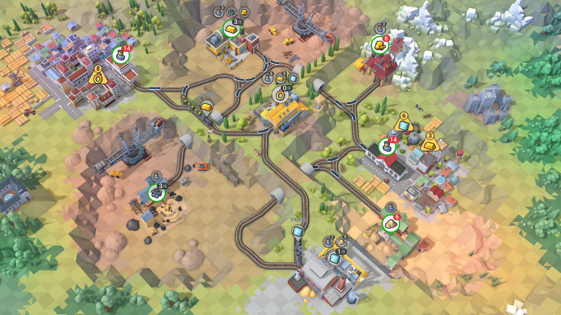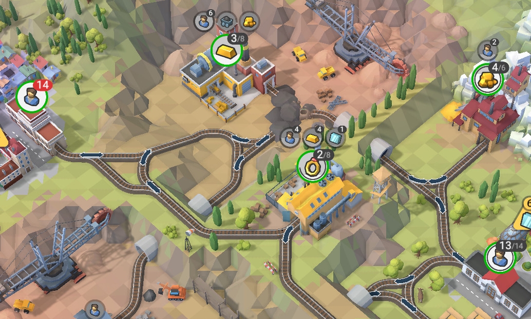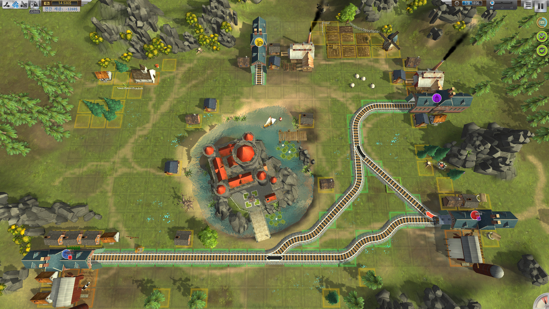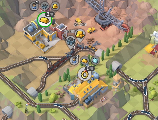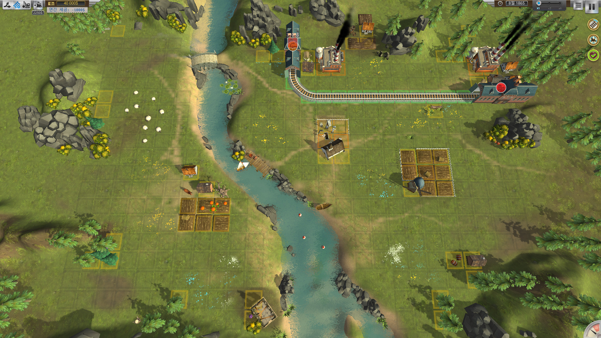 게임 진행으로 넘어가면 선로를 연결해서 시설로 기차를 보내면 됩니다. 각 시설로 자원을 운반 할때 돈을 벌고 이것으로 새로운 기차 선로를 계속 깔면 됩니다.