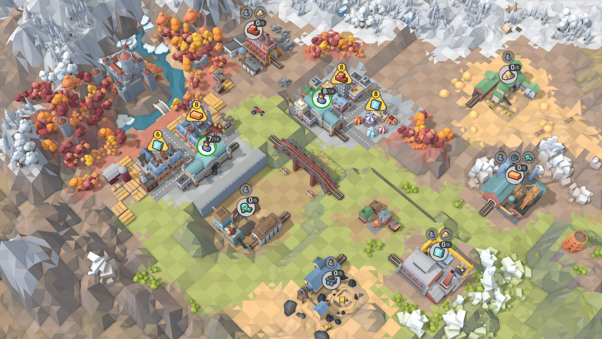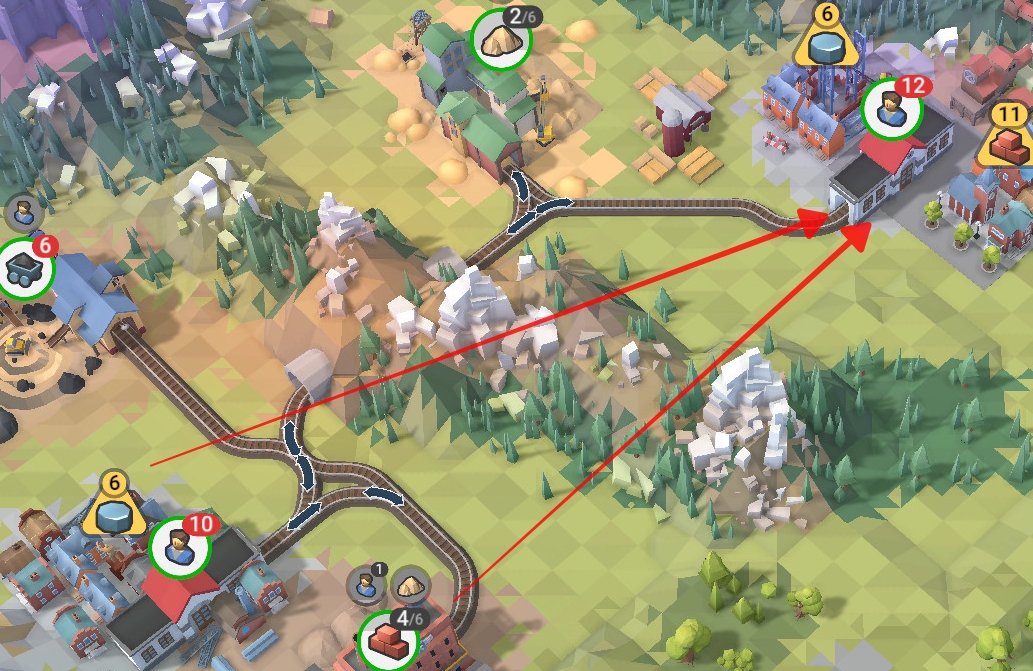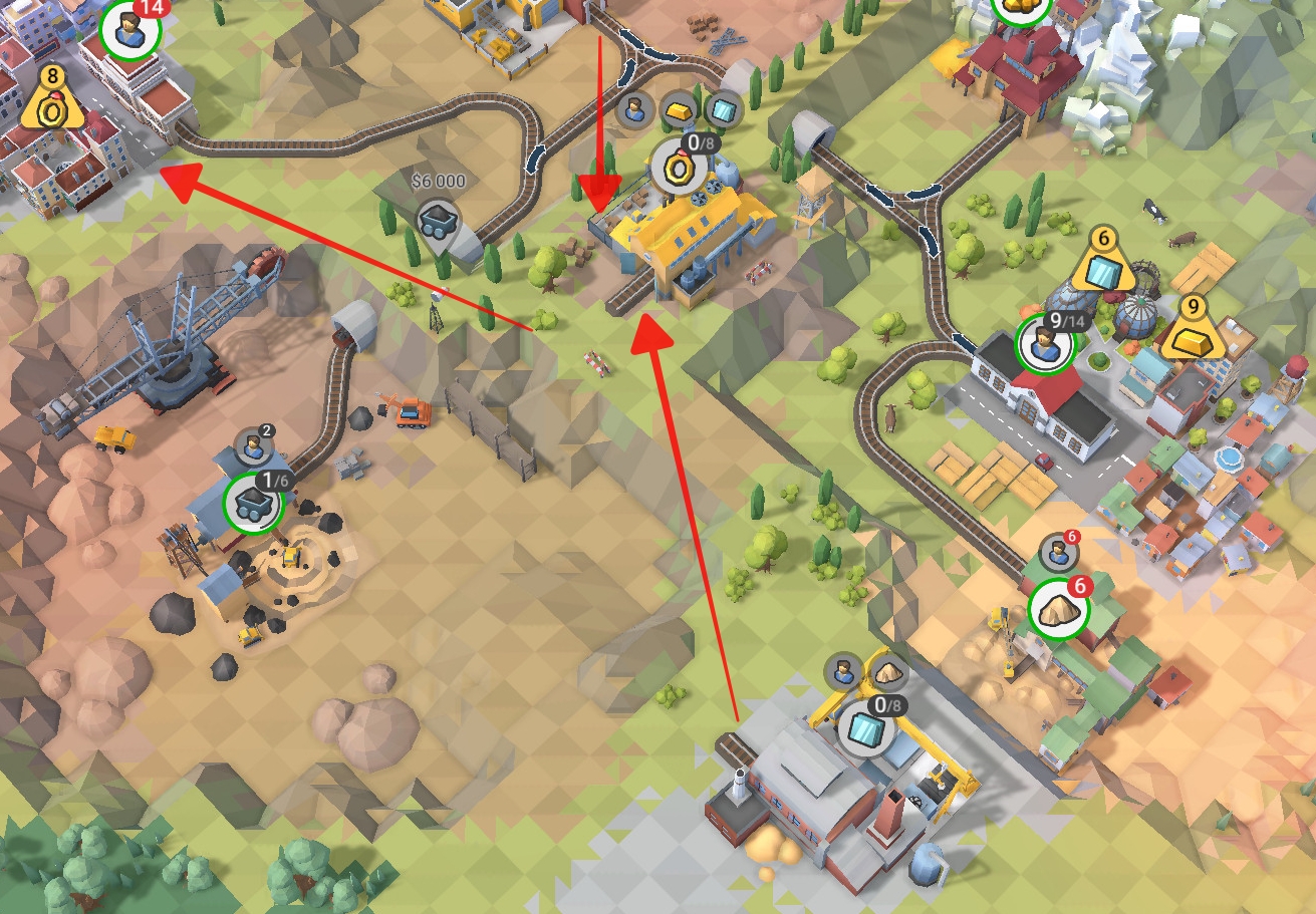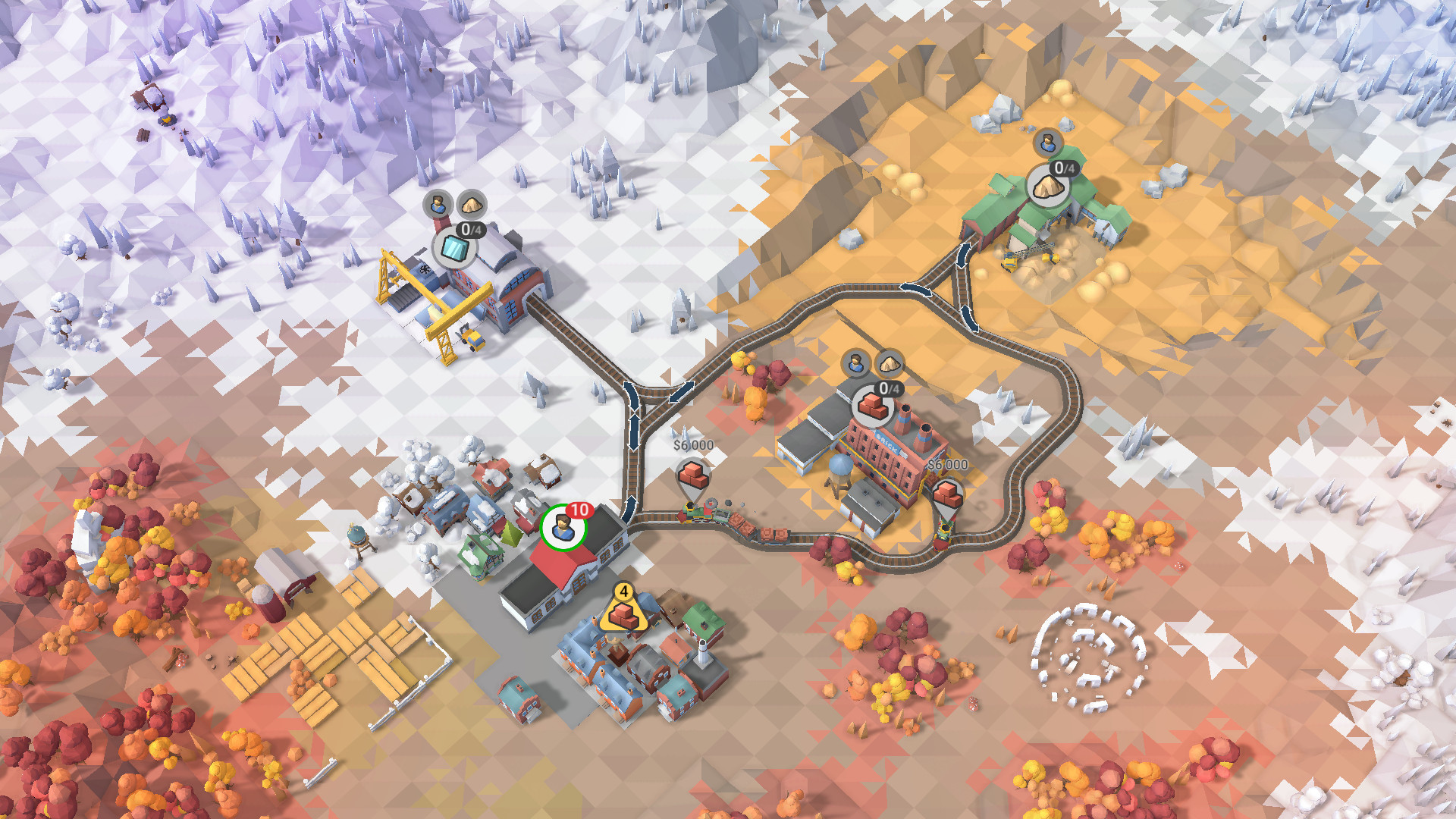 게임 진행으로 넘어가면 선로를 연결해서 시설로 기차를 보내면 됩니다. 각 시설로 자원을 운반 할때 돈을 벌고 이것으로 새로운 기차 선로를 계속 깔면 됩니다.