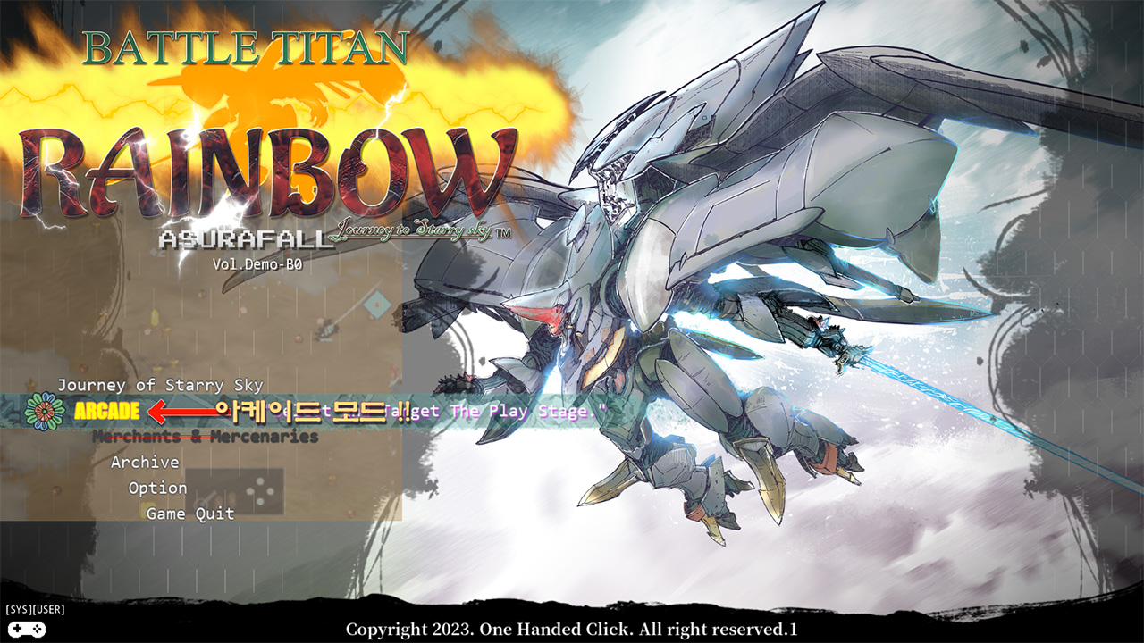(시나리오 데모 스테이지 를 클리어 후 아케이드 모드를 Play 할수있습니다)