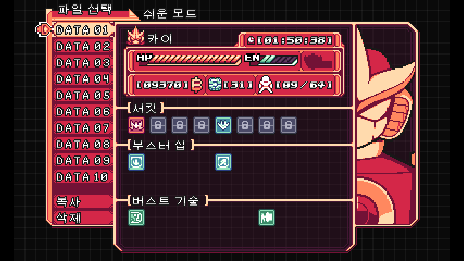 어릴때 말고는 이쪽 장르를 잘 안해서 어려웠습니다. 이지 모드인데도 그렇네요. ㅜㅜ