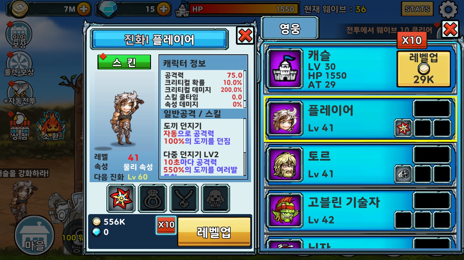 뒤에 획득하는 영웅들이 당연히 더욱 강력할 것이라는 생각을 가질 수도 있지만 의외로 타워 히어로 타워 디펜스에서는 영웅들마다 기본 스탯은 거의 같게 설정되어 있어요. 사용하는 스킬과 공격 방식은 상위 영웅일수록 더 좋을 확률이 높지만 적어도 스탯은 비슷하니 골고루 성장시켜주는 게 좋습니다