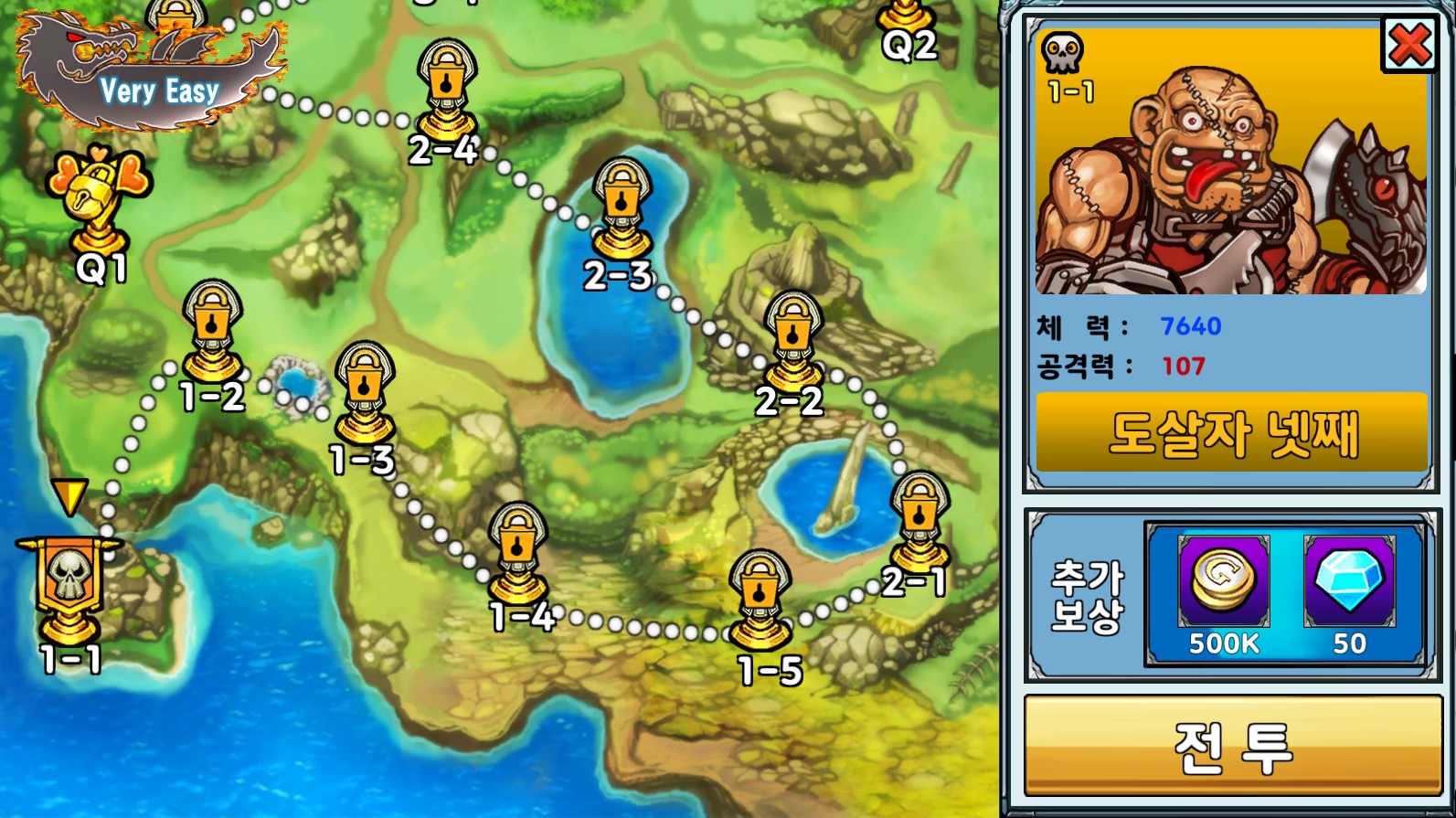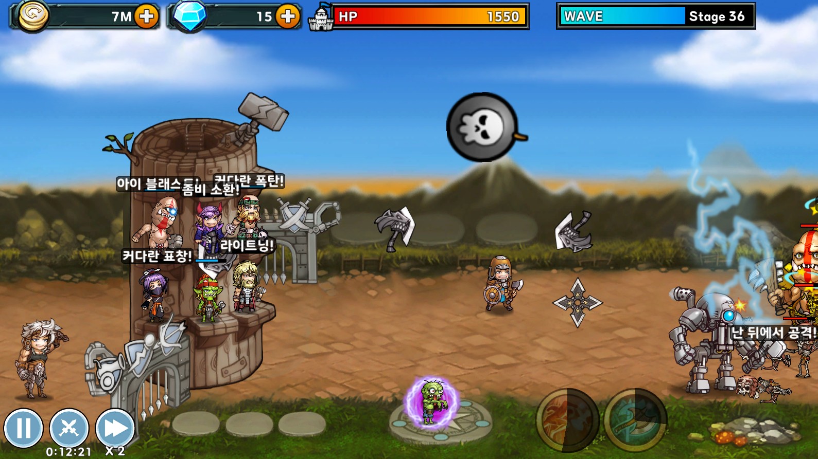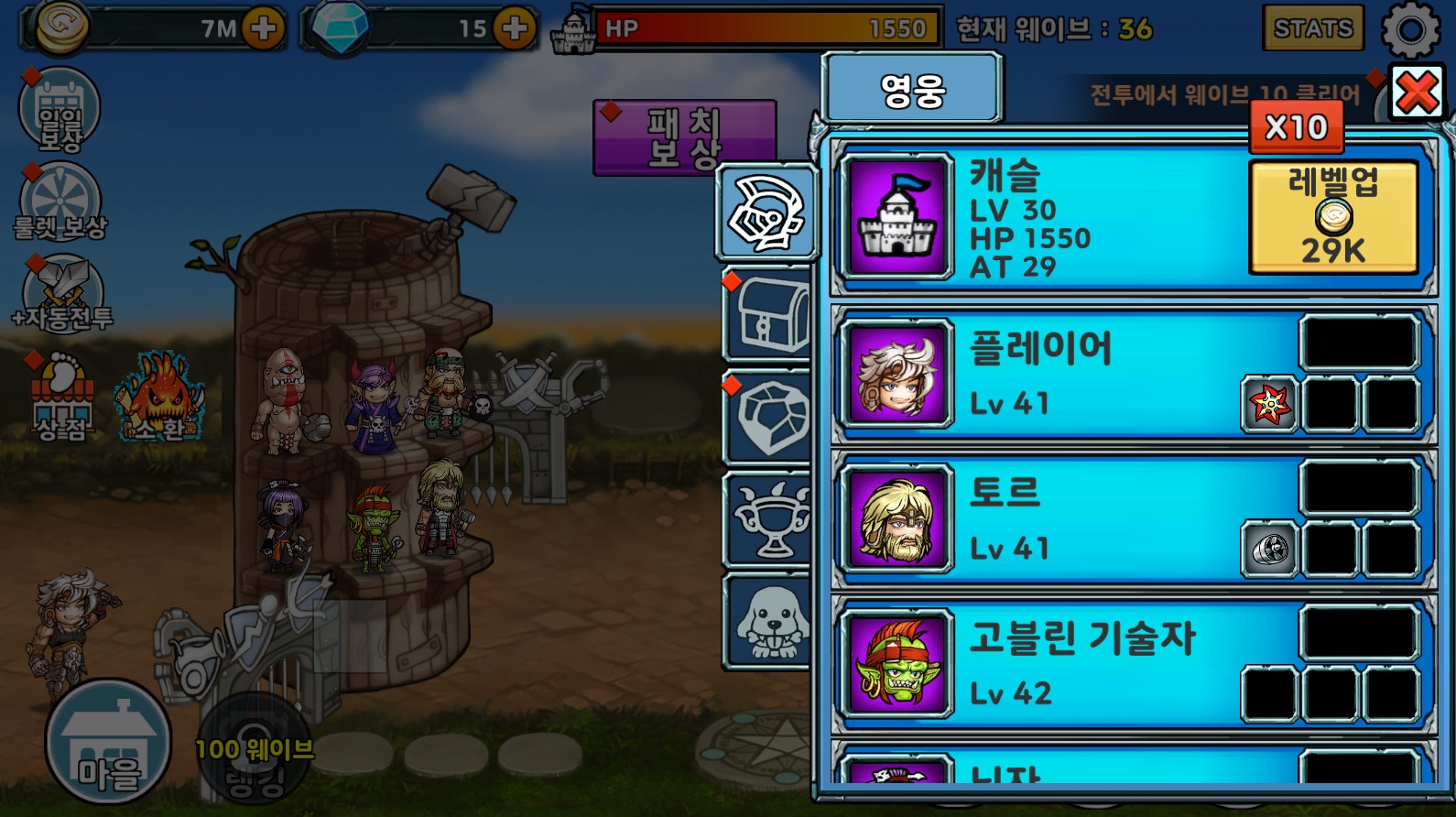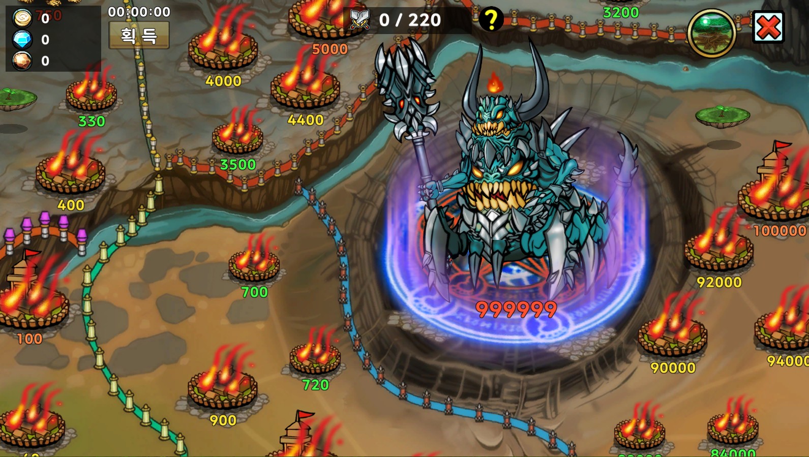 정해진 위치에 타워나 영웅을 배치, 그걸 통해 웨이브를 클리어해나가는 방식이 아니라 웨이브를 시작하면 적이 알아서 내 앞으로 찾아오고 그걸 하나의 타워에서 막아내는 형태를 타워 히어로 타워 디펜스는 사용하고 있어요. 그렇기에 매 번 비슷한 장면만 보게된다는 건 살짝 아쉬운 부분이지만 적들의 종류가 계속해서 바뀌기고 내가 사용할 수 있는 영웅의 수도 계속해서 늘어나기에 자연스럽게 계속 웨이브를 쌓아나가게 됩니다