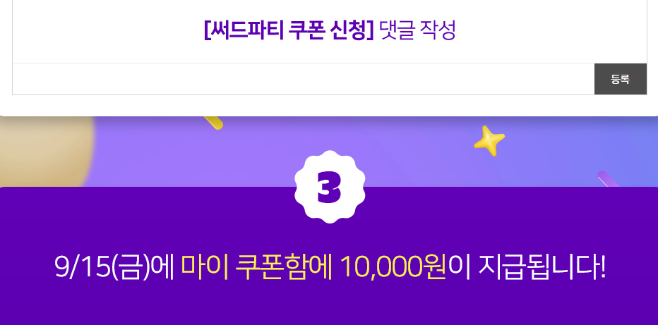 8월에 써드 파티 쿠폰을 신청하면 9월 15일에 쿠폰이 지급 됩니다. 기존에는 16일이었는데 하루 앞당겨졌습니다.