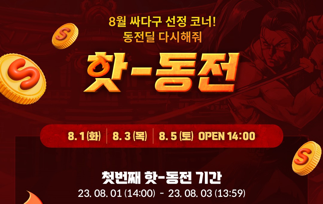 오우 정보추! 저는 다음달에는 88만원 이벤트는 포기고 동전딜 전부 사고 댄디 에이스, 여포키우기, 블레이트 어썰트랑 출시 게임중에 이벤트 있는거 정도 사면 되겠네요!