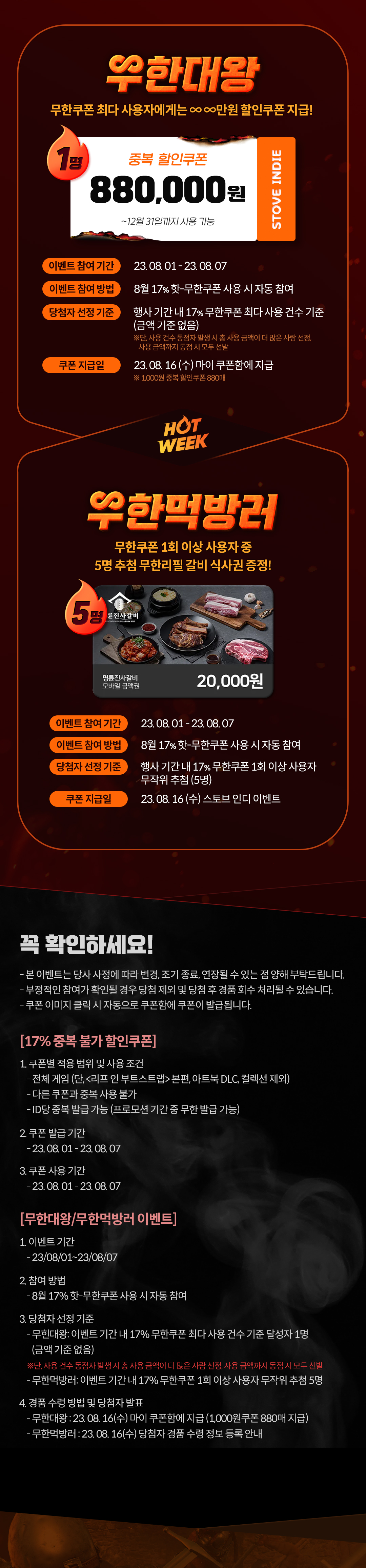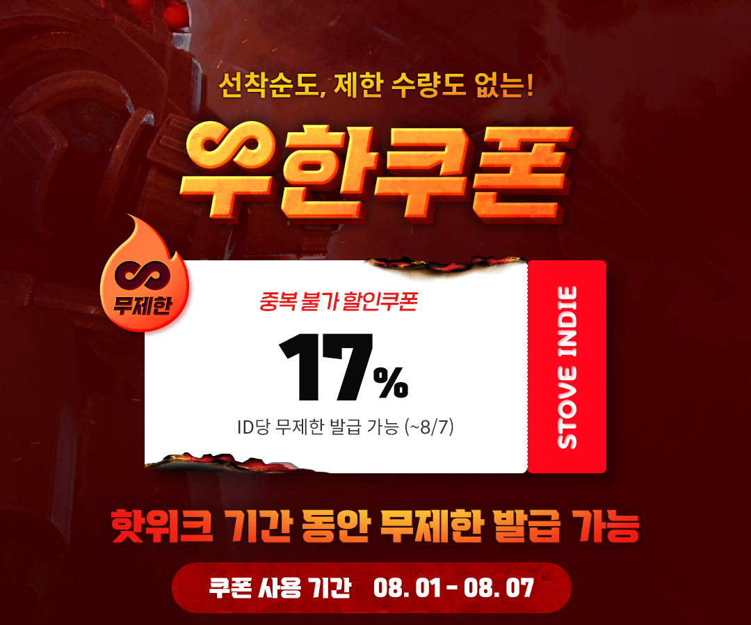 새로운 방식의 이벤트가 나왔네요. 무제한 중복 불가 17% 쿠폰입니다. 이거와 관련된 이벤트가 엄청 무서운건데요.