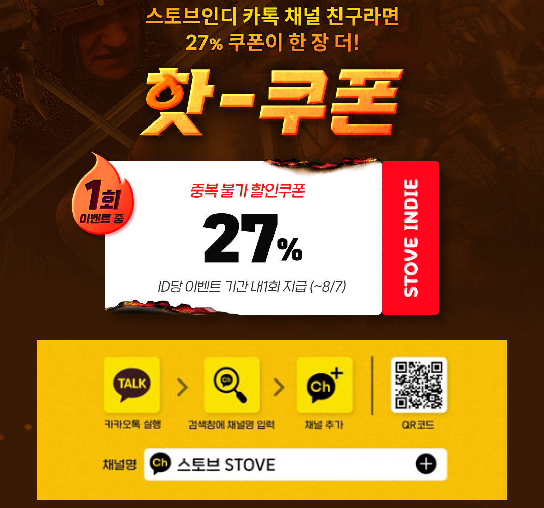 예전처럼 카카오톡 채널을 통해 27% 중복 불가 할인 쿠폰을 줍니다.