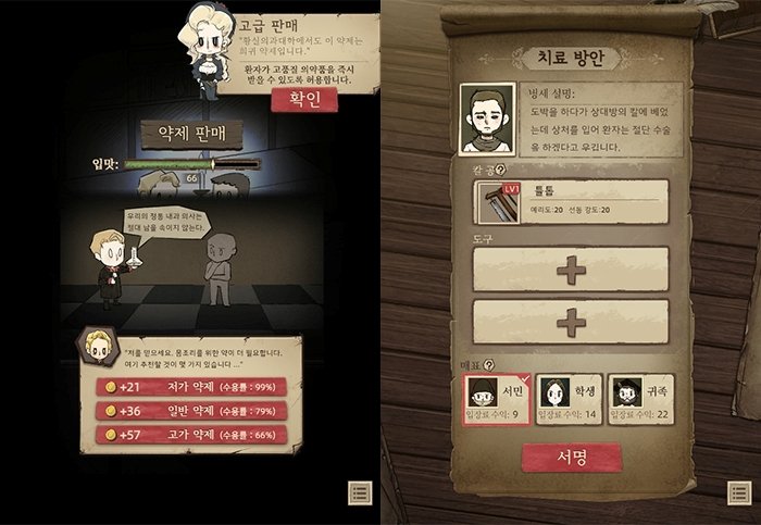 그렇게 환자를 치료하고 대화형 스토리 어드벤처를 진행하면서 다양한 엔딩을 볼 수 있습니다. 중세기 의학 지식은 보너스.