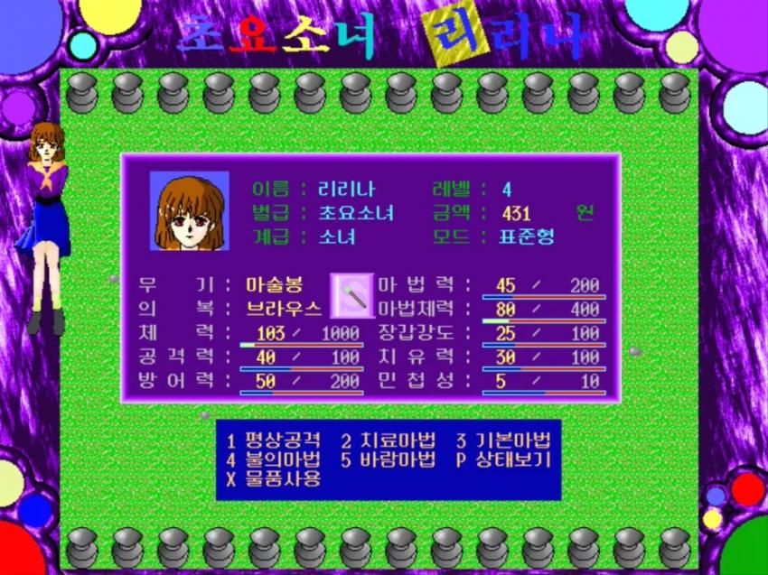 초요소녀 리리나라는 게임입니다. 1997년 게임이고, 한국 게임 같습니다...