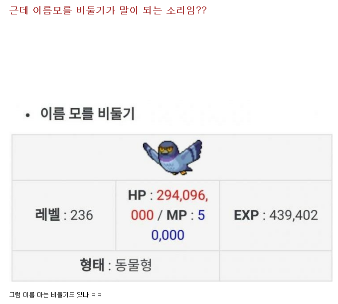 메이플특) 몹 중에 '이름 모를 비둘기'가 있음