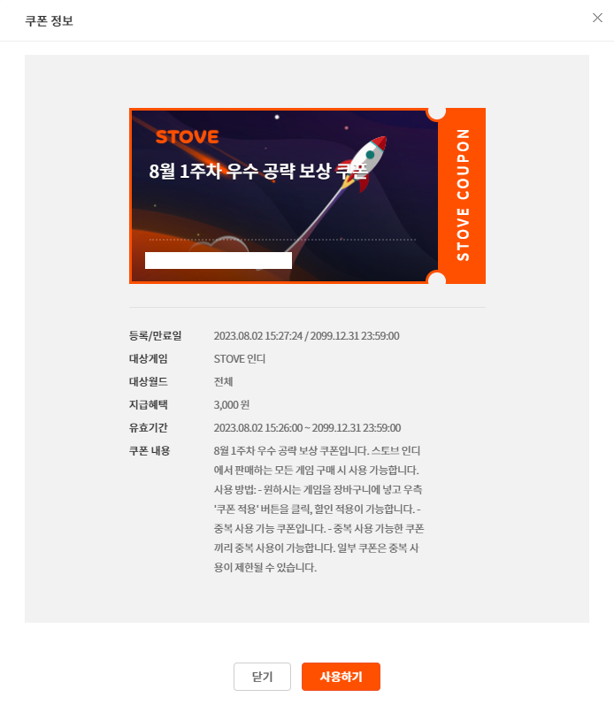 위 스샷에 쿠폰 정보 내용에 보면 "모든 게임 구매시 사용 가능합니다" 라고 있지만 컬랙션 같은 게임 여러개 판매하는건 적용 불가능 하네요