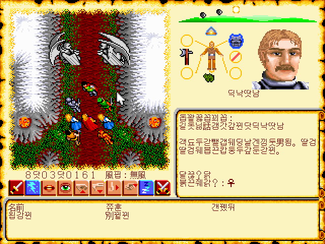 아마 한글패치(한국어 패치)의 단계에서 한글 폰트만 넣어두고 그 다음 단계를 진행하지 않으면 이런 느낌일 겁니다...