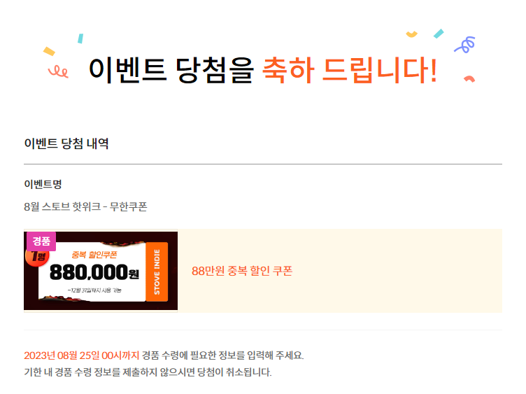 88만 원 쿠폰 축하드려요!!! 대박이네요!