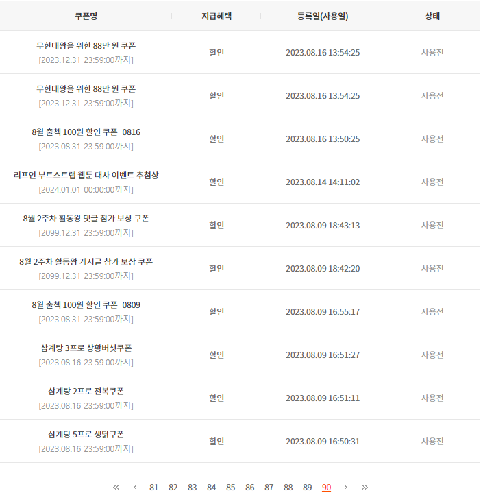 쿠폰만 90페이지 넘기네요 ㅋㅋㅋㅋ