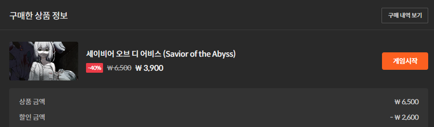 삼계탕 쿠폰은 모든 게임에 적용되는게 아니라 이벤트 페이지 하단에 있는 게임만 적용 됩니다. 그 중에서 적당한 가격과 재미를 가진 게임을 찾다가 발견한 게임 입니다. 할인가에 사볼만한데 플탐이 좀 짧고 진행 중에 뜬금없이 사망하는 경우가 많아 호불호가 좀 갈리는 게임이더군요. 하지만 전반적으로 살펴본 결과 할인가에 도전할만한 게임이라고 판단해 사버렸습니다.