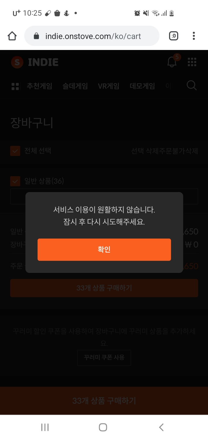 모바일 스토브 장바구니 시스템 오류로 게임을 살 수 없어요 누가 장바구니좀 지워줘