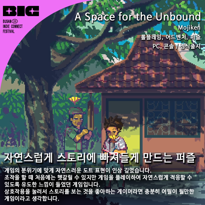 스페이스 포 더 언바운드 명작으로 인정 받은 게임이죠! 스토브 인디에 입점 되었으면 좋겠어요