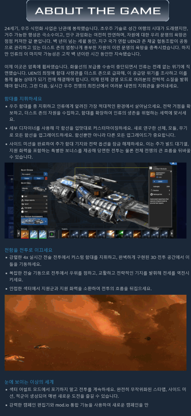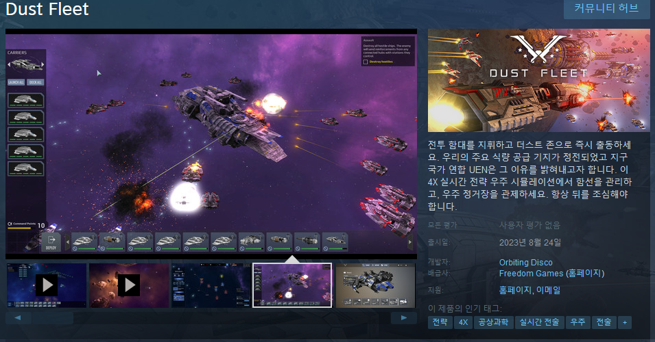 더스트 플릿이라는 신규 게임 입니다. 4x 실시간 함대 지휘 전투라네요. 캠페인이 있다고 하니 스토리도 즐길 수 있을 것 같습니다!