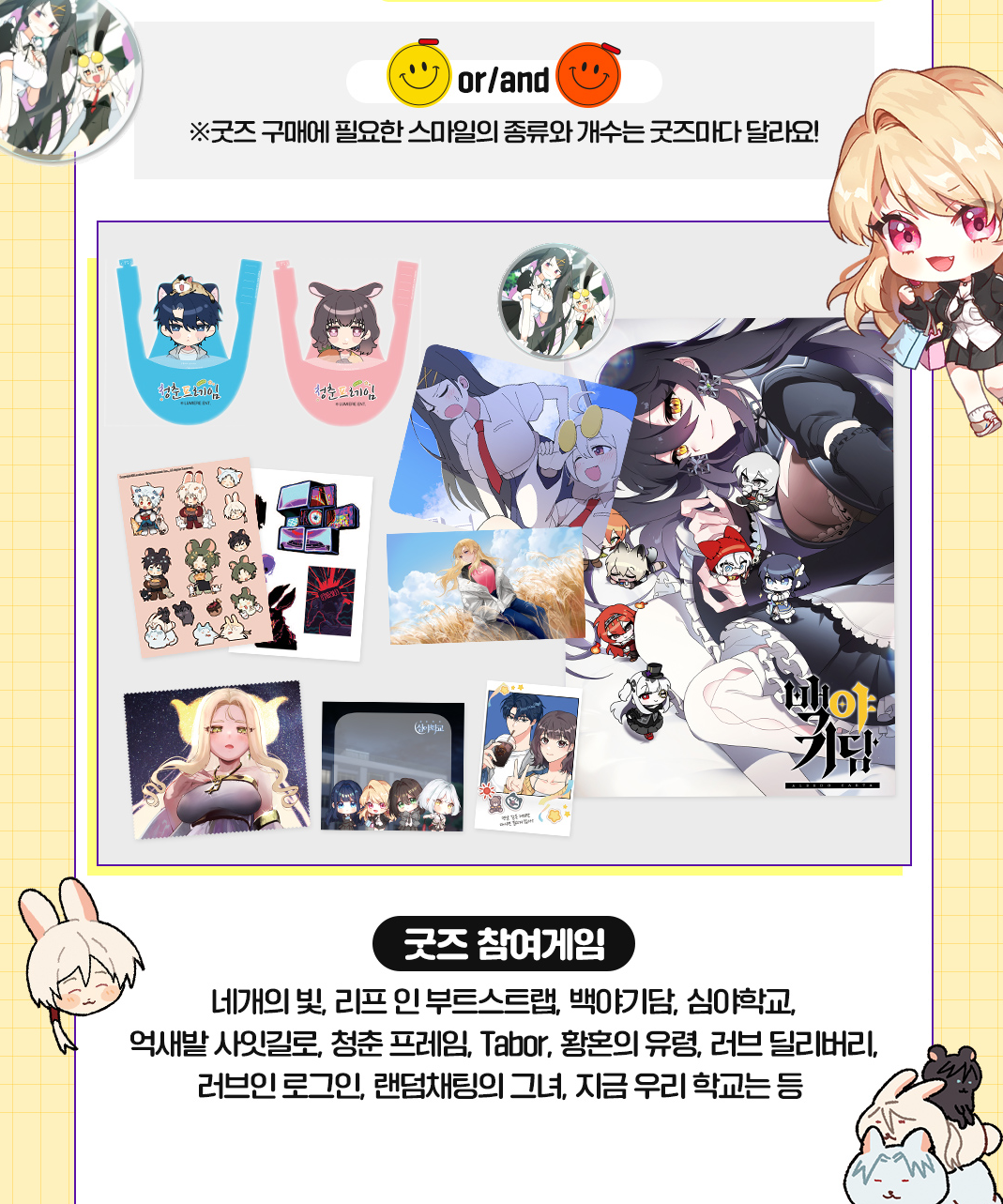 굿즈로 나왔다는 건 그만큼 캐릭터가 매력적이라는 의미이기도 하죠. 오프라인 행사에 참여하기 전에 각 게임들을 플레이해 보시면 굿즈 쇼핑을 하는 재미가 있을 것 같습니다.