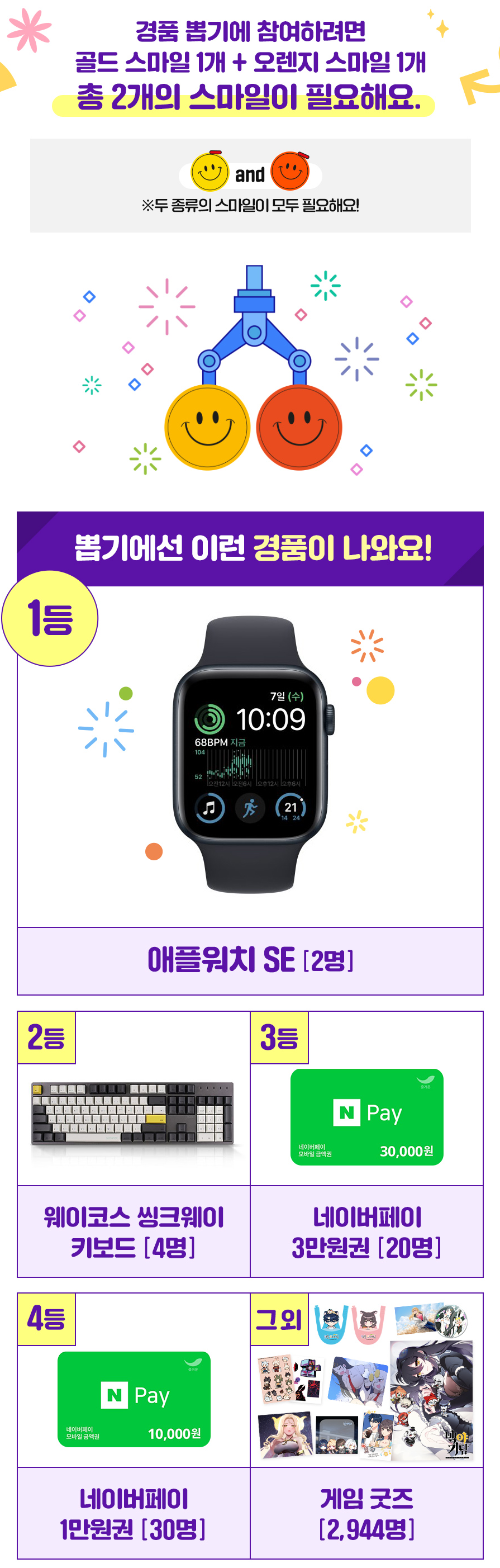 보다시피 게임 굿즈 추첨 인원이 굉장히 많습니다. 아마도 꽝이 없는 시스템?