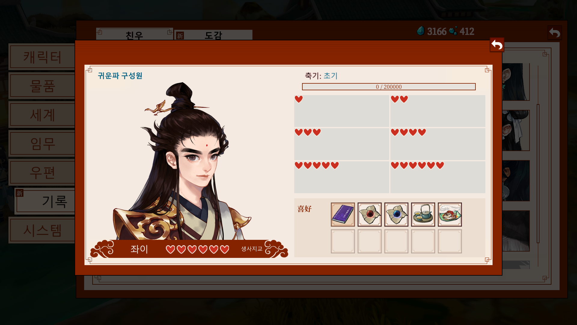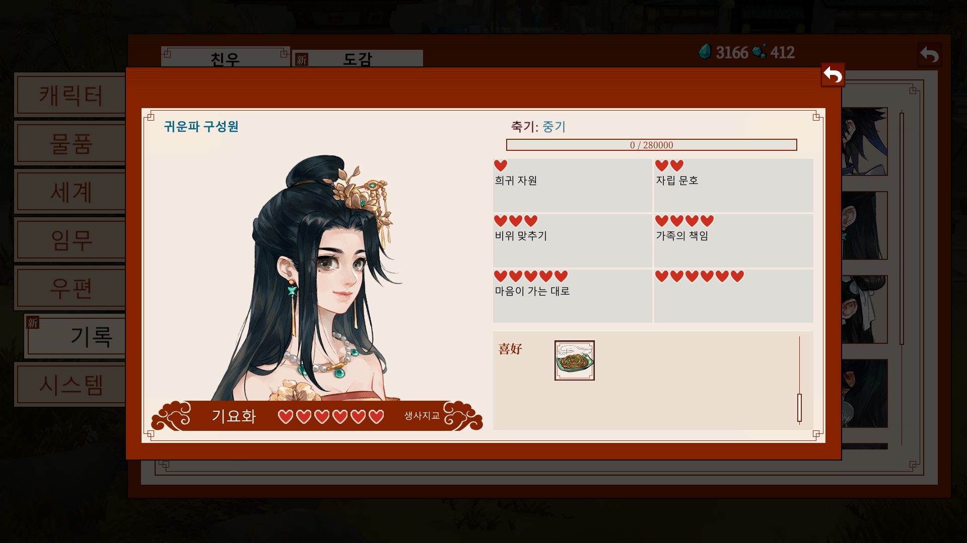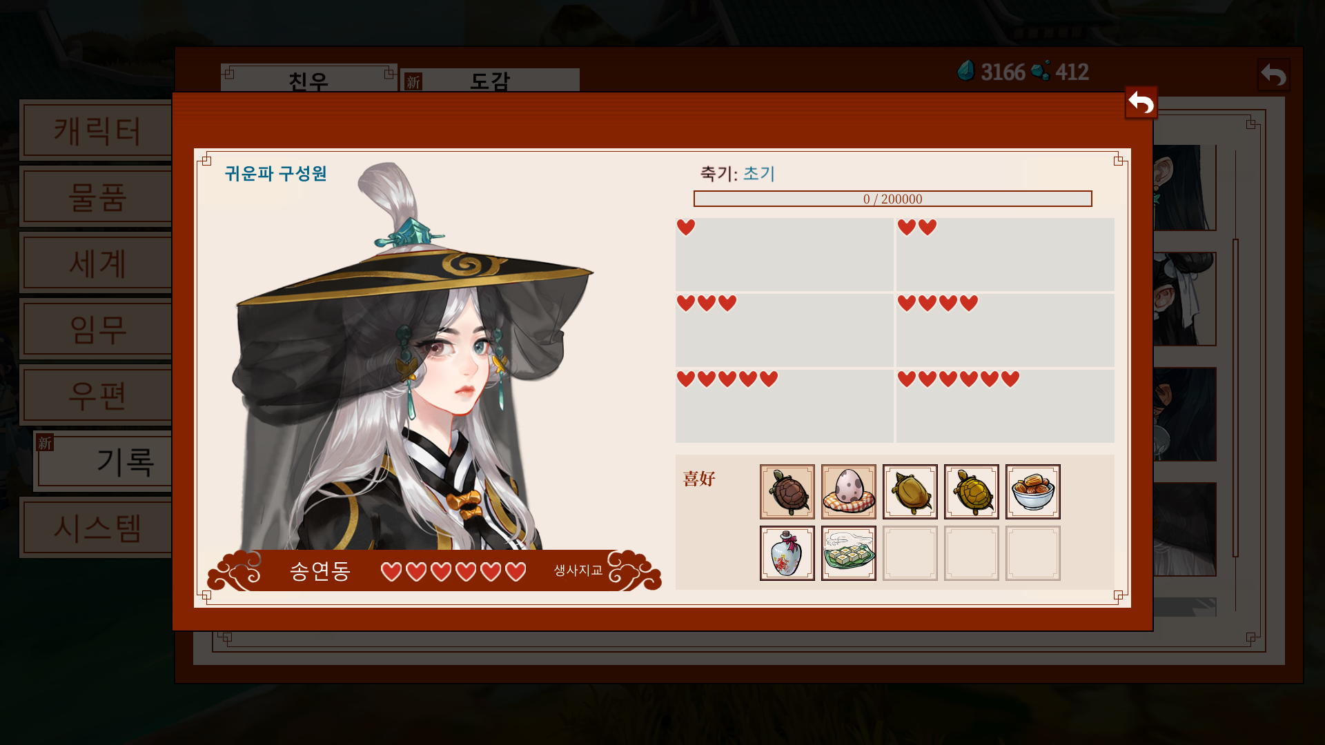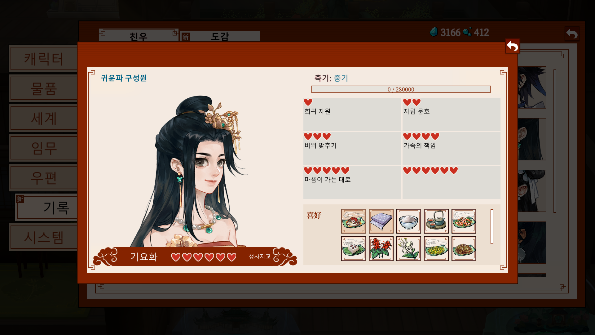 *가이드: 문파 지급품으로 주는 영단을 바탕으로, 비는 날짜에는 요리를 시도해보자.