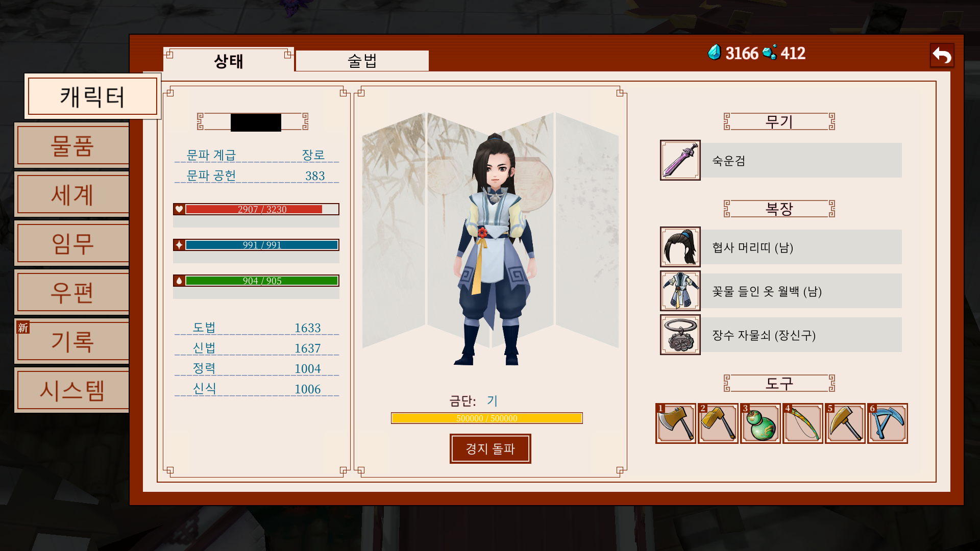 *가이드: 문파 지급품으로 나오는 영단이나 주자. 모자라면 상점에서 사다주자.