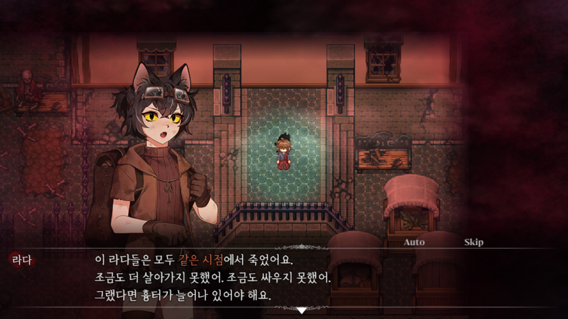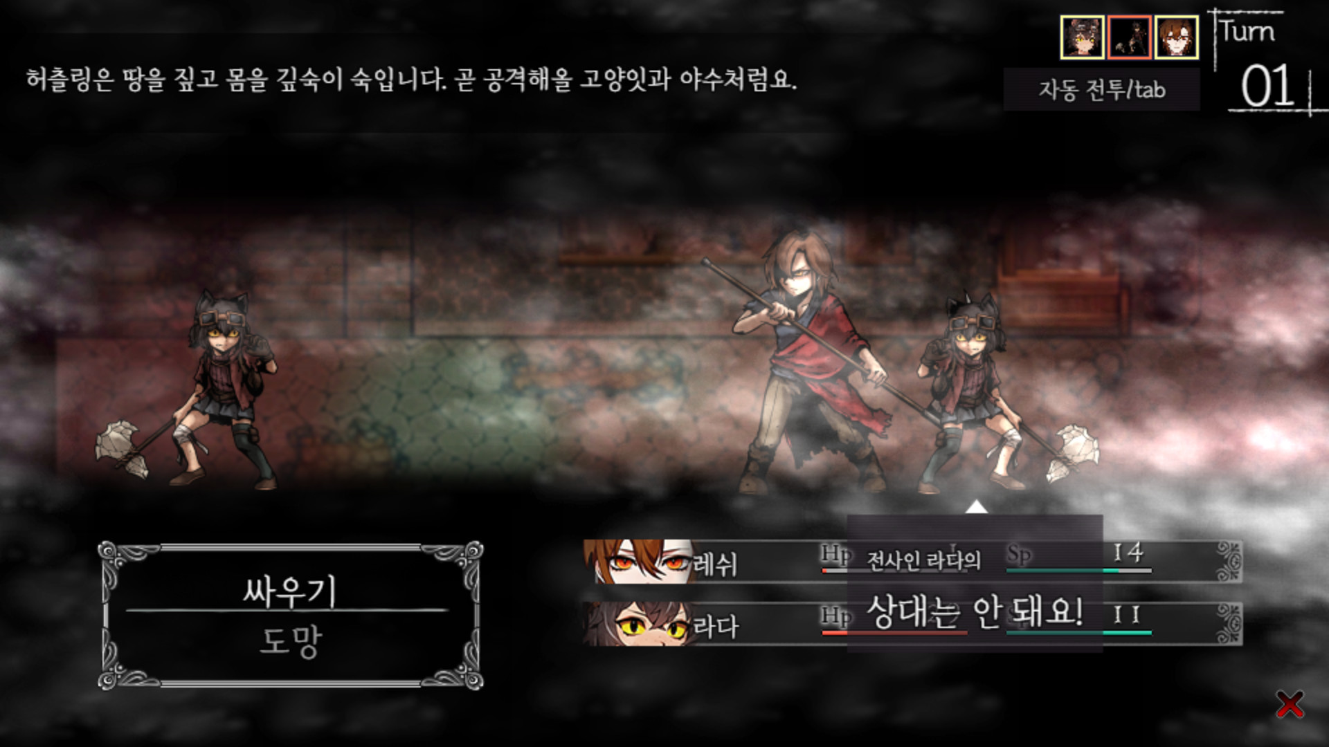 라다의 동생을 깨우는 부분은 회복약을 충분히 준비할 것을 권합니다. 라다의 도플 갱어들은 HP가 50 정도에 매턴 광역 공격을 쓰기 때문에 경직 효과가 있는 선제 공격을 먹여 경직을 걸지 못하면 피해가 큽니다.