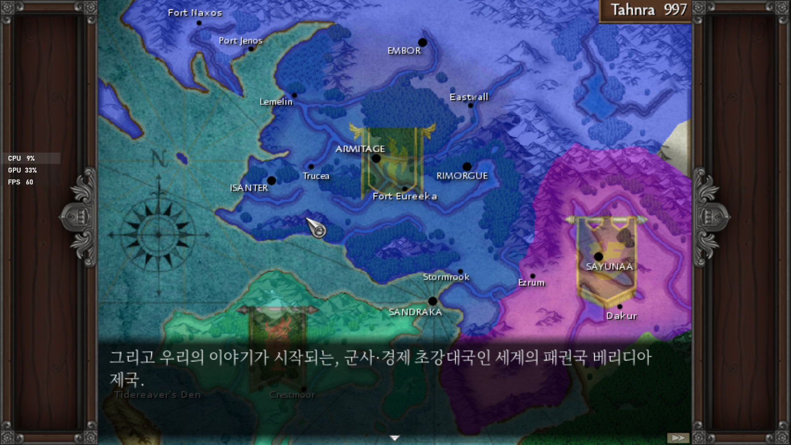 본격적인 이야기의 시작에 앞서 지도 화면을 통해 간략하게 세계관과 국가 설명에 들어갑니다.
