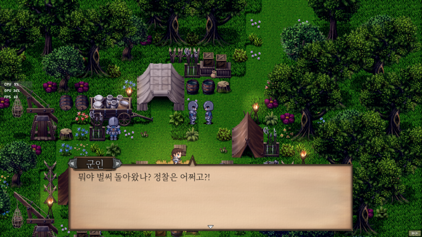 지도 화면에서 전체적인 사건을 보고 난 뒤에 이제 야영지나 기타 장소에서 인물들간의 이벤트가 벌어집니다.