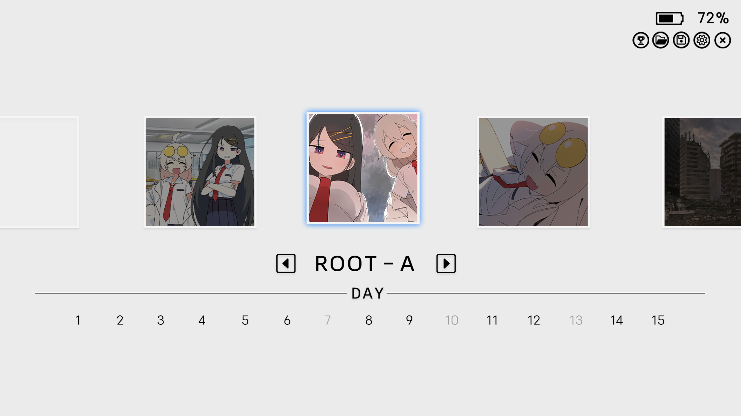 루트 선택 화면에서 확인 가능하며, 도전과제의 클리어 유무는 모든 세이브파일에 공통으로 적용됩니다.